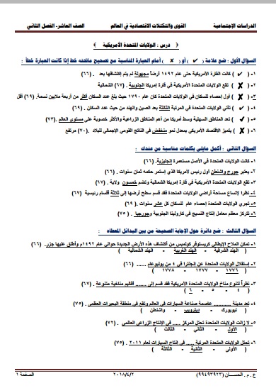 ملخصات الوحدة السادسة في الدراسات الاجتماعية للصف العاشر الفصل الثاني 2018