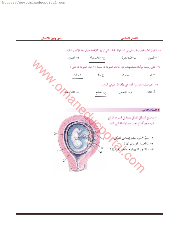 حل اسئلة نمو جنين الإنسان الفصل 6 في الاحياء للصف الثاني عشر الفصل الثاني