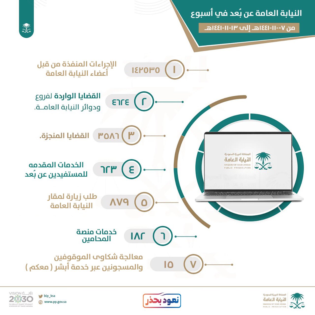 ا لـ ـنـ ـيـ ـا بـ ـة ا لـ ـعـ ـا مـ ـة On Twitter النيابة العامة تنفذ ١٤٢٥٣٥ إجراء خلال أسبوع واحد نعود بحذر