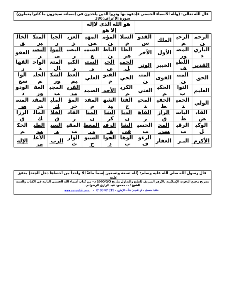 Doc منظومة أسماء الله الحسنى Hocine Hamid Academia Edu