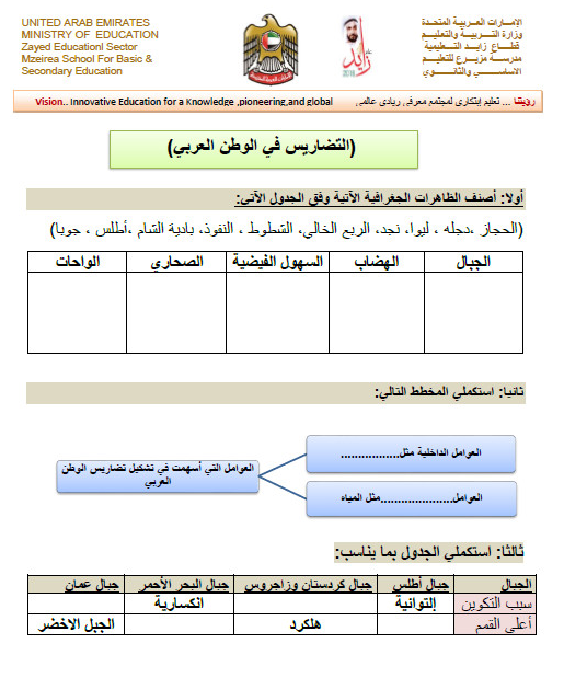 تضاريس الوطن العربي Interactive Worksheet