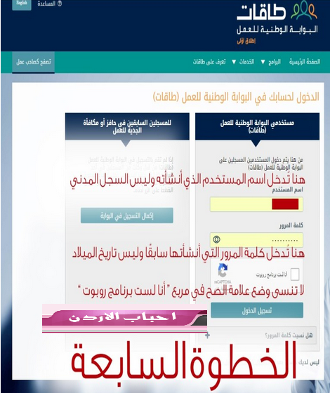 هام جدا للمسجلين السابقين في حافز شرح بالصور لطريقة الدخول والتحديث على طاقات البوابة الوطنية للعمل