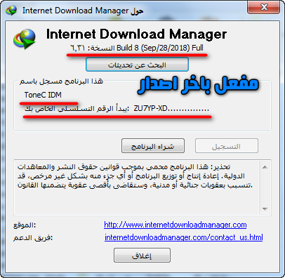 سريال الرقم التسلسلي لبرنامج التحميل داونلود مانجر Internet Download Manager