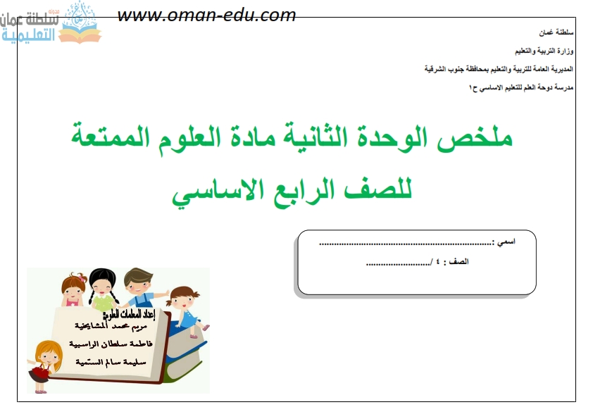 ملخص الوحدة الثانية الكائنات الحية والبيئات للصف الرابع الفصل الأول