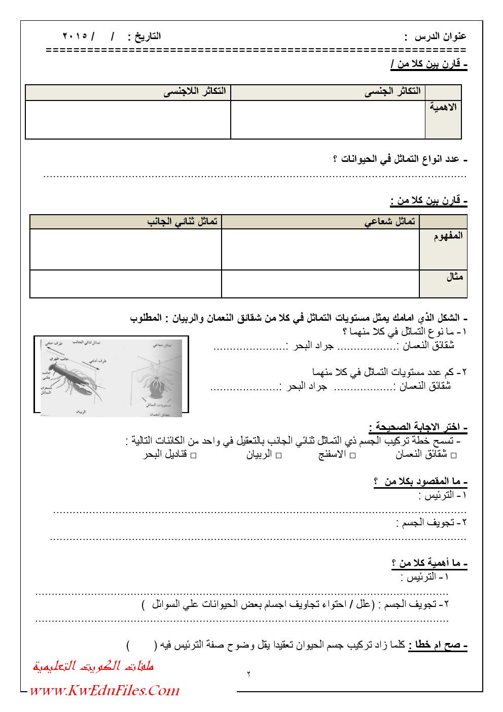 اوراق عمل الصف العاشر علوم الفصل الثاني ملفات الكويت التعليمية