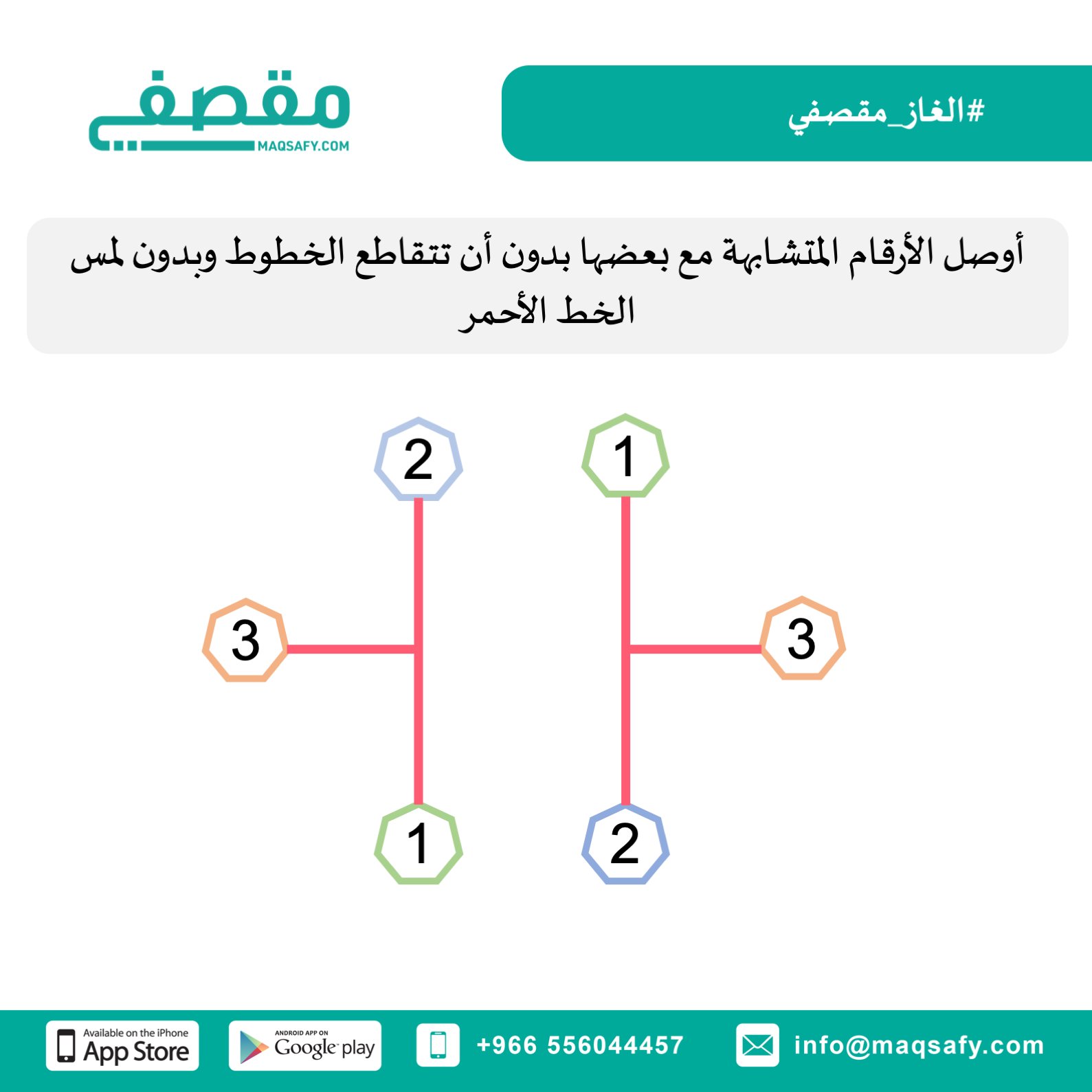 مقصفي On Twitter الغاز مقصفي كل يوم أوصل الأرقام المتشابهة مع بعضها بدون أن تتقاطع الخطوط وبدون لمس الخط الأحمر ورينا اجابتك في التعليقات لتحميل تطبيق مقصفي Https T Co 4rvdgwosuz Maqsafy كلنا مسؤول عاجل السعودية